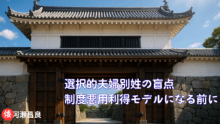 世相の道 選択的夫婦別姓の盲点 ― 見えない危険性 選択的夫婦別姓の盲点——背乗りと偽装婚が「資産流出ビジネス」に化ける前に塞ぐ三つの穴 /* ===== Design Tokens (統一) ===== */ :root{ --bg:#ffffff; --text:#1b1f23; --m... 2025.10.01 世相の道塾長のつぶやき