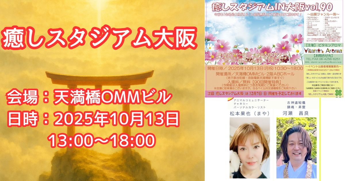2025年・秋「癒しスタジアム大阪」10/13(月祝)開催! 2025年4開催目となります「癒しスタジアム大阪90」は10月13日(月祝)に実施。